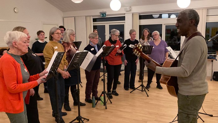 Gospelkoret øver i menighedscenteret